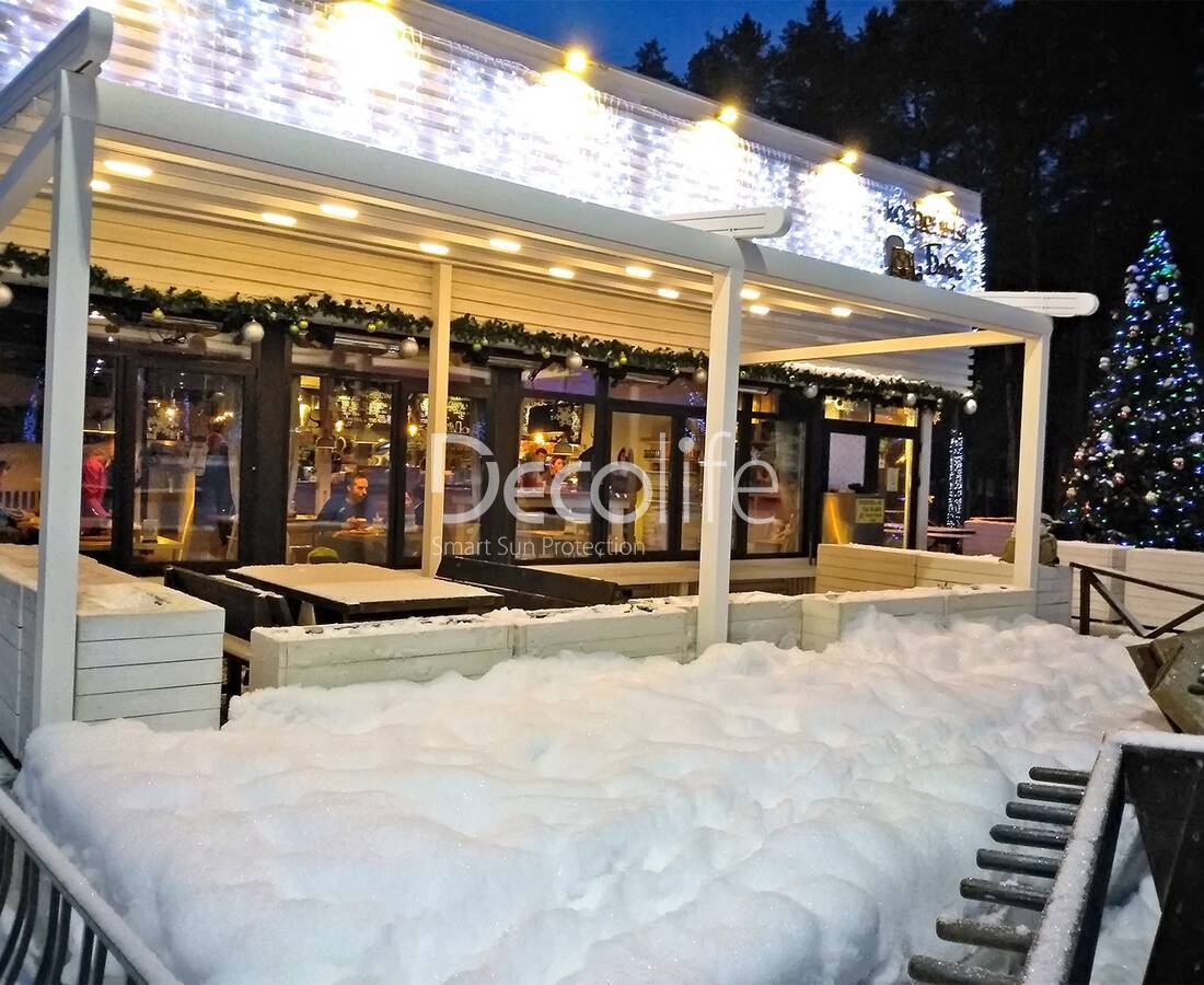 Пергола тентовая Decolife Project Light + Вертикальная система Zip 100 - реализовано партнером "ООО Люкс Террас" - г. Красногорск