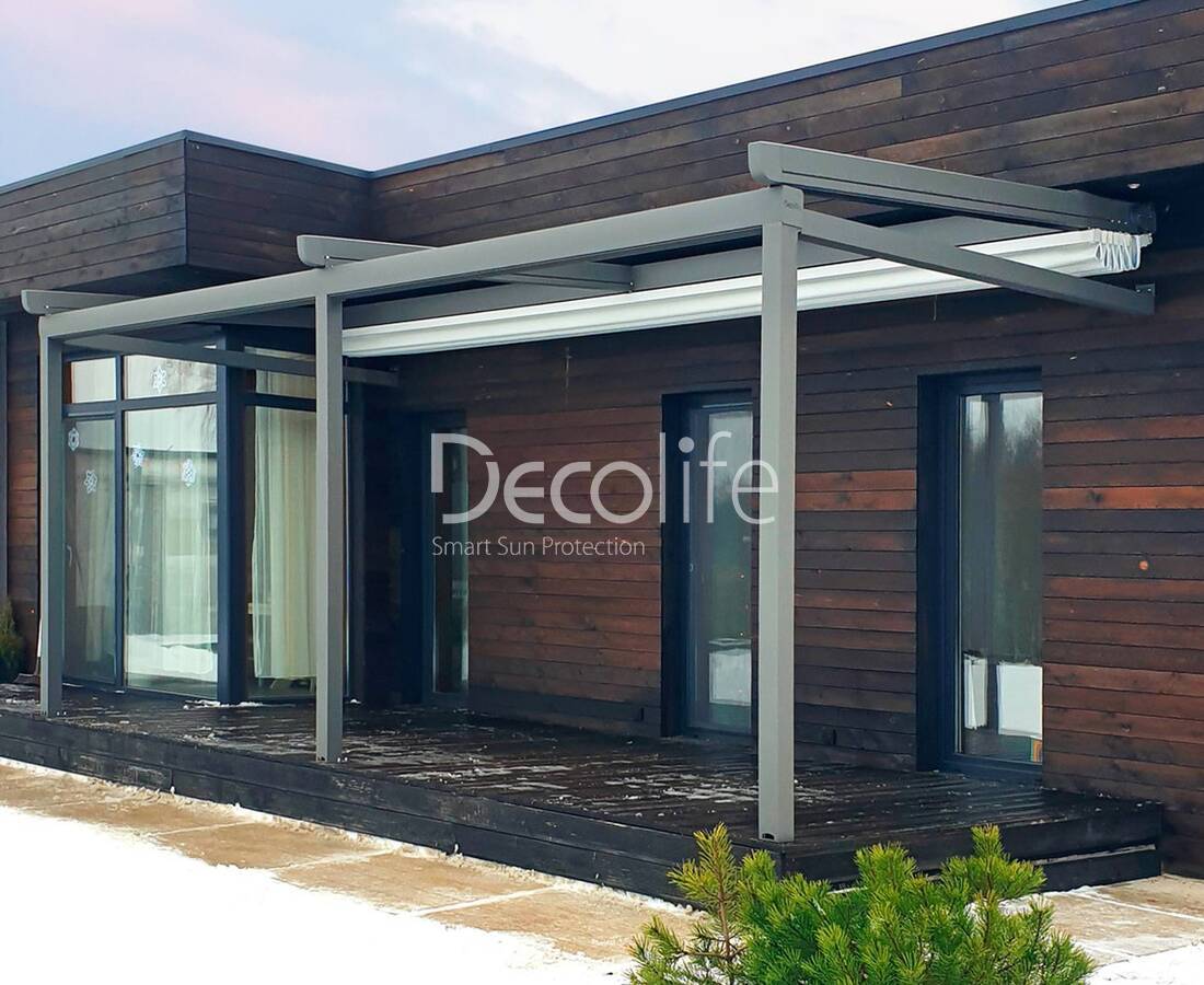 Пристенная тентовая пергола Decolife Project Light + LED освещение + Вертикальная система Zip 100 - аг. Раков