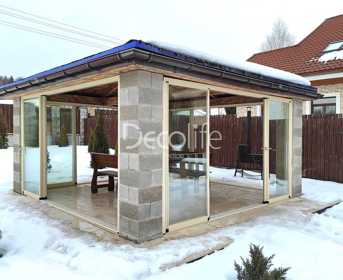 Пергола Decolife B600 PIR + Гильотинное W500 и раздвижное S500 остекление - Московская обл.
